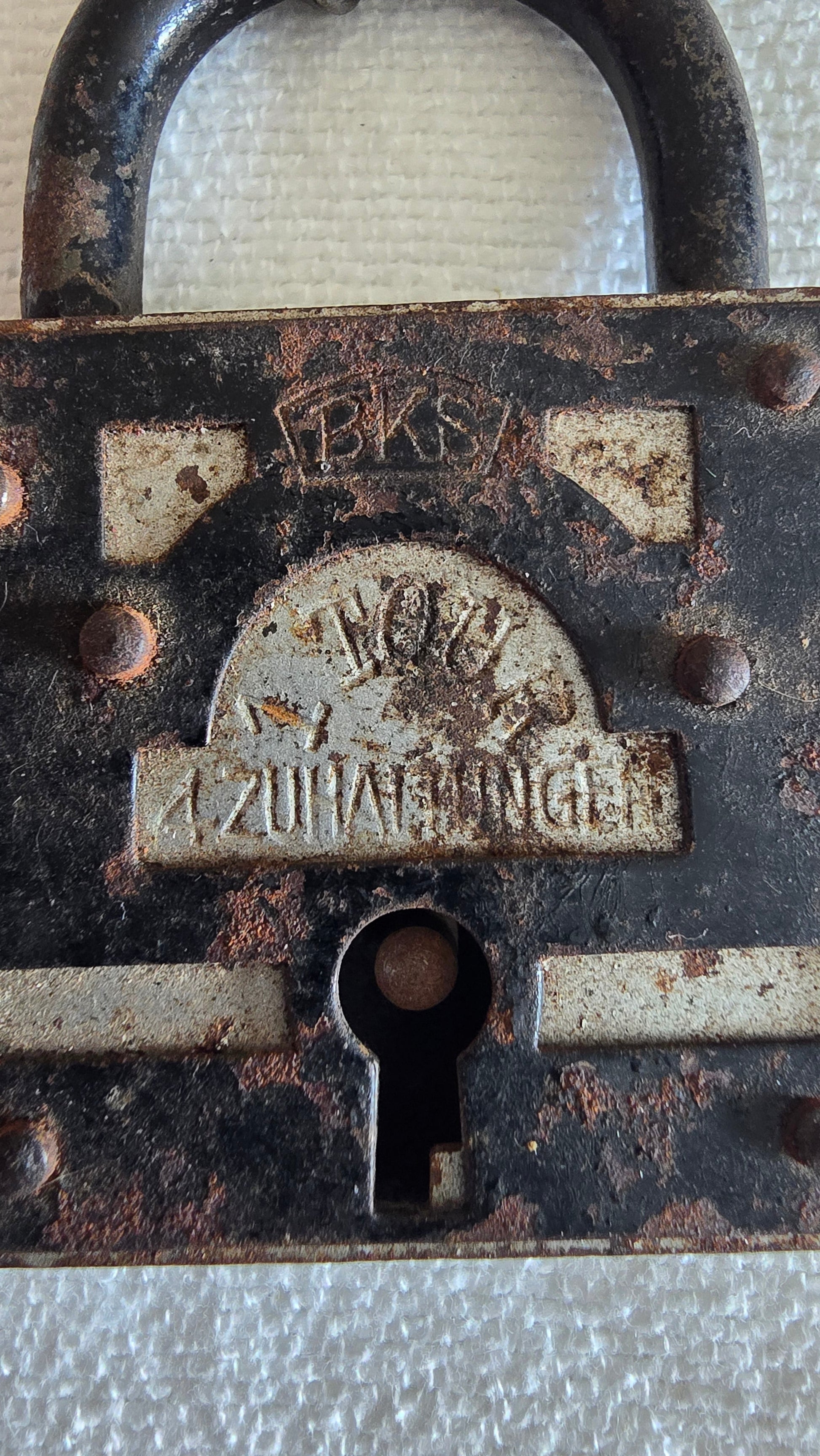 Antique German BKS Zuhaltungen Padlock with Keys - Working