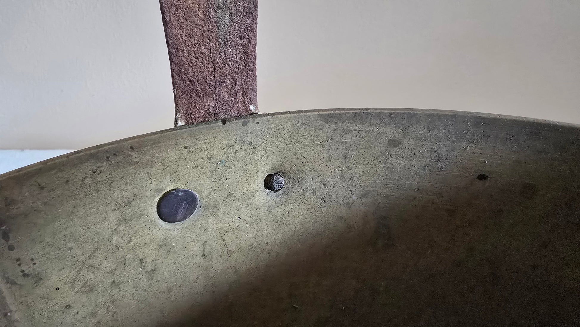 - Handle attached by rivets