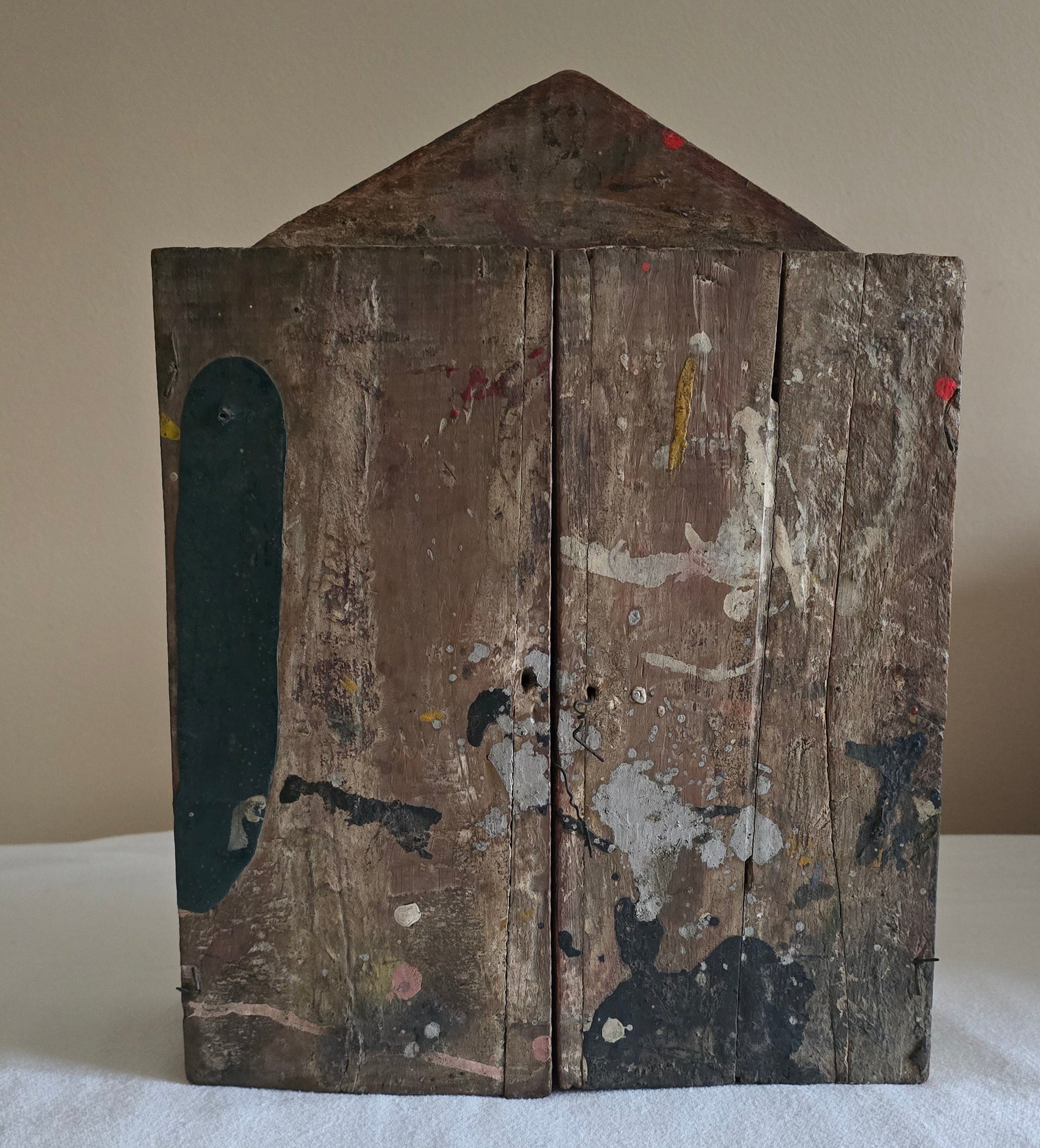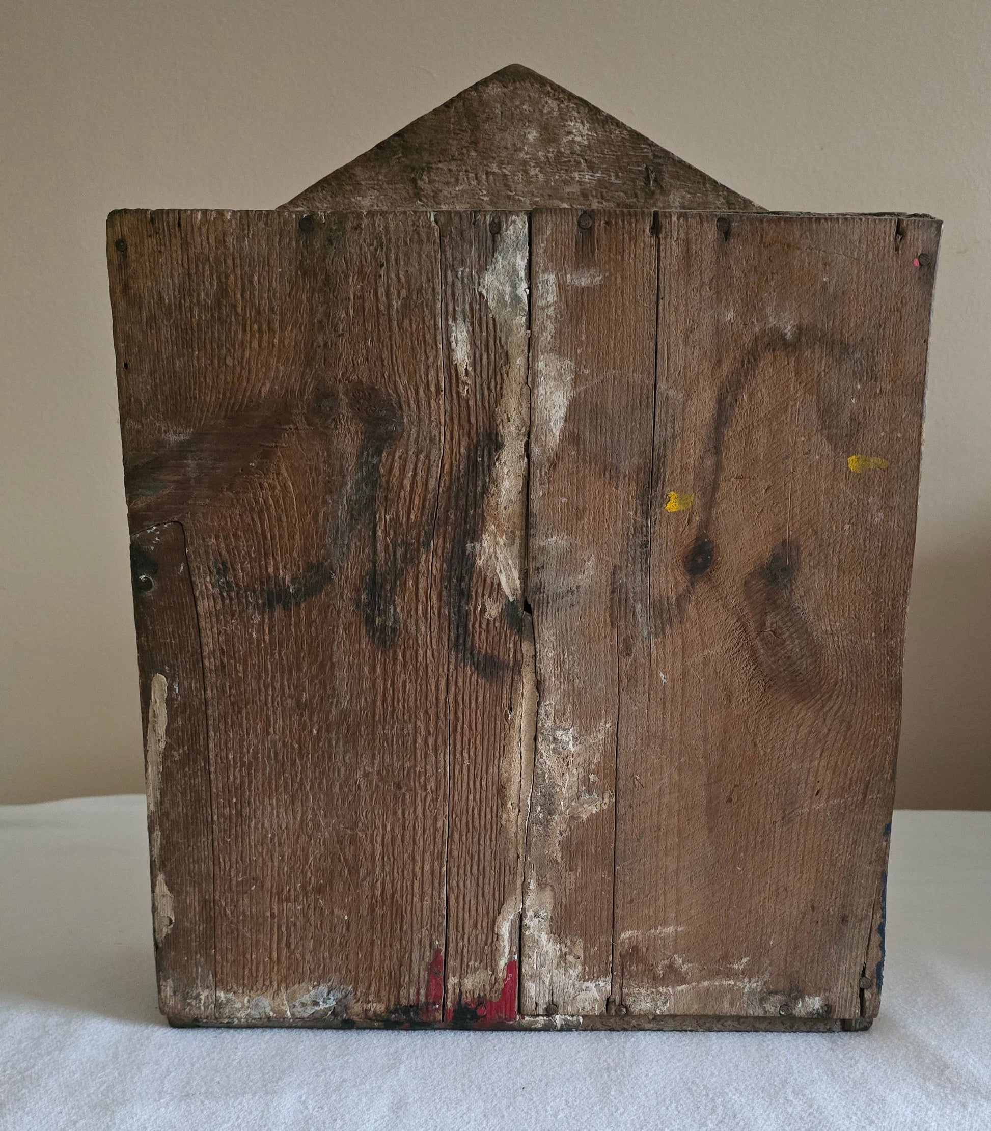 Antique Peruvian Retablo Religious Saints Carved Shrine Prayer Box Cabinet Filadelfia