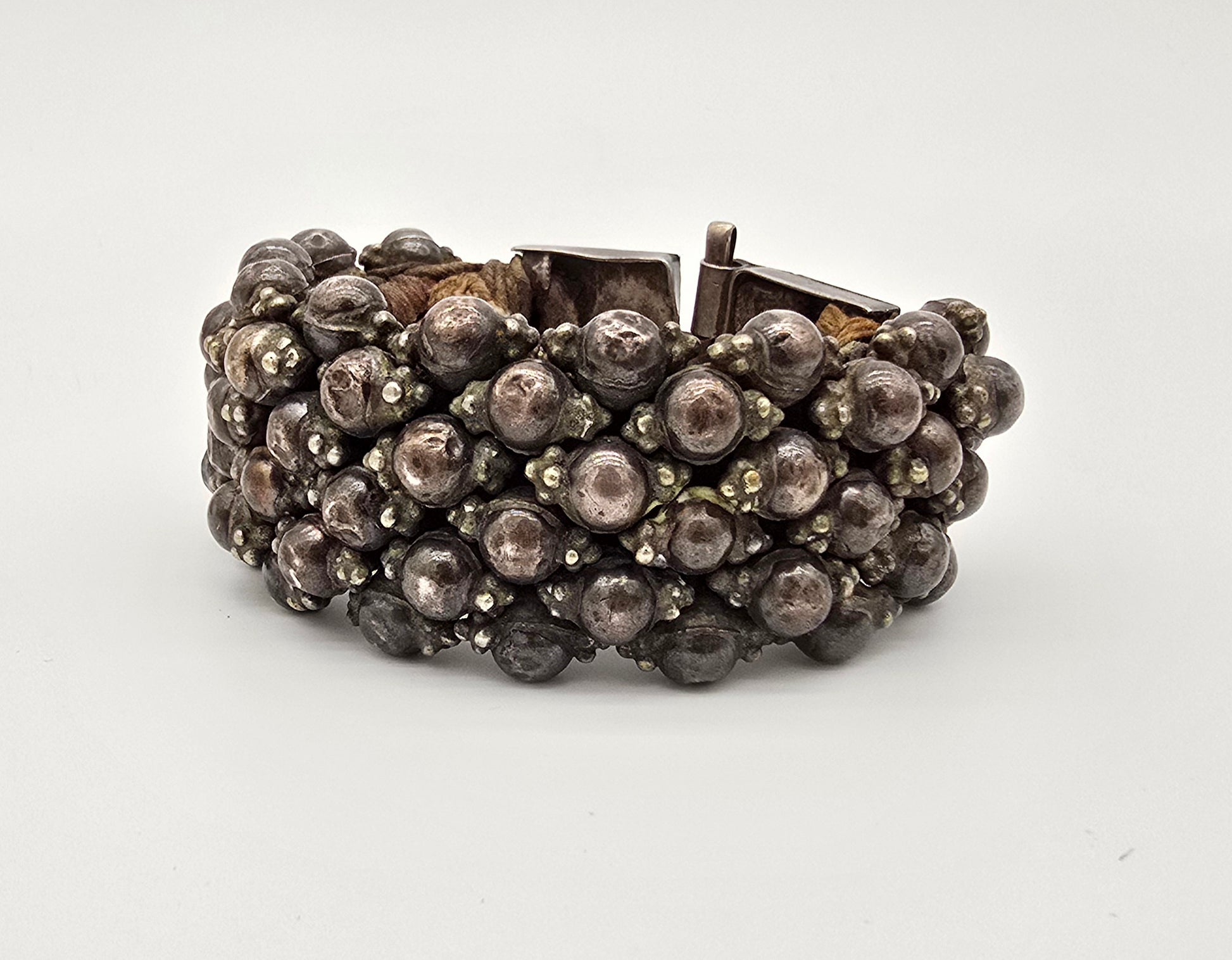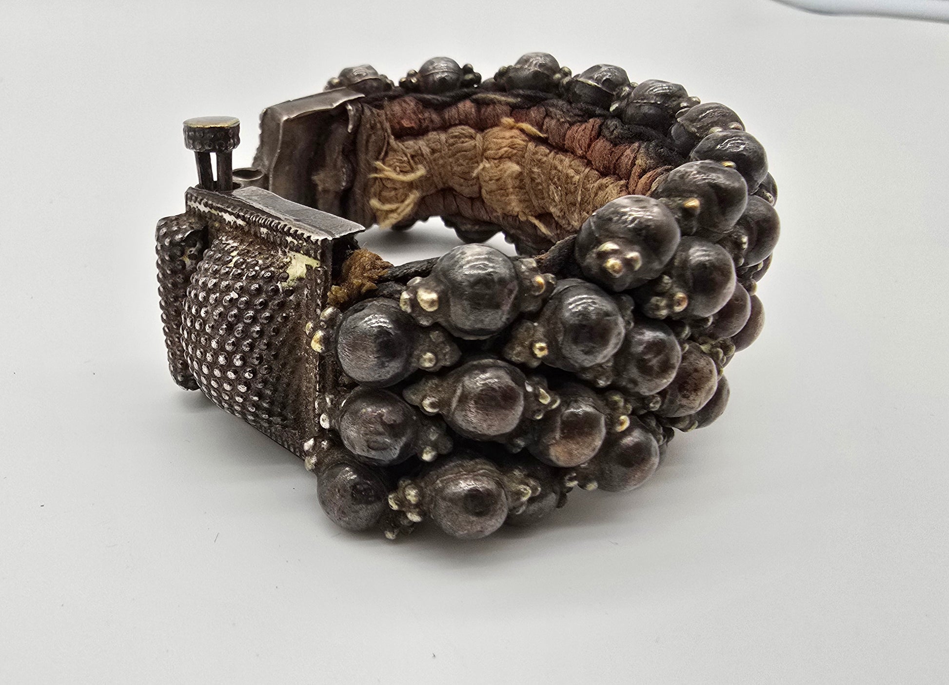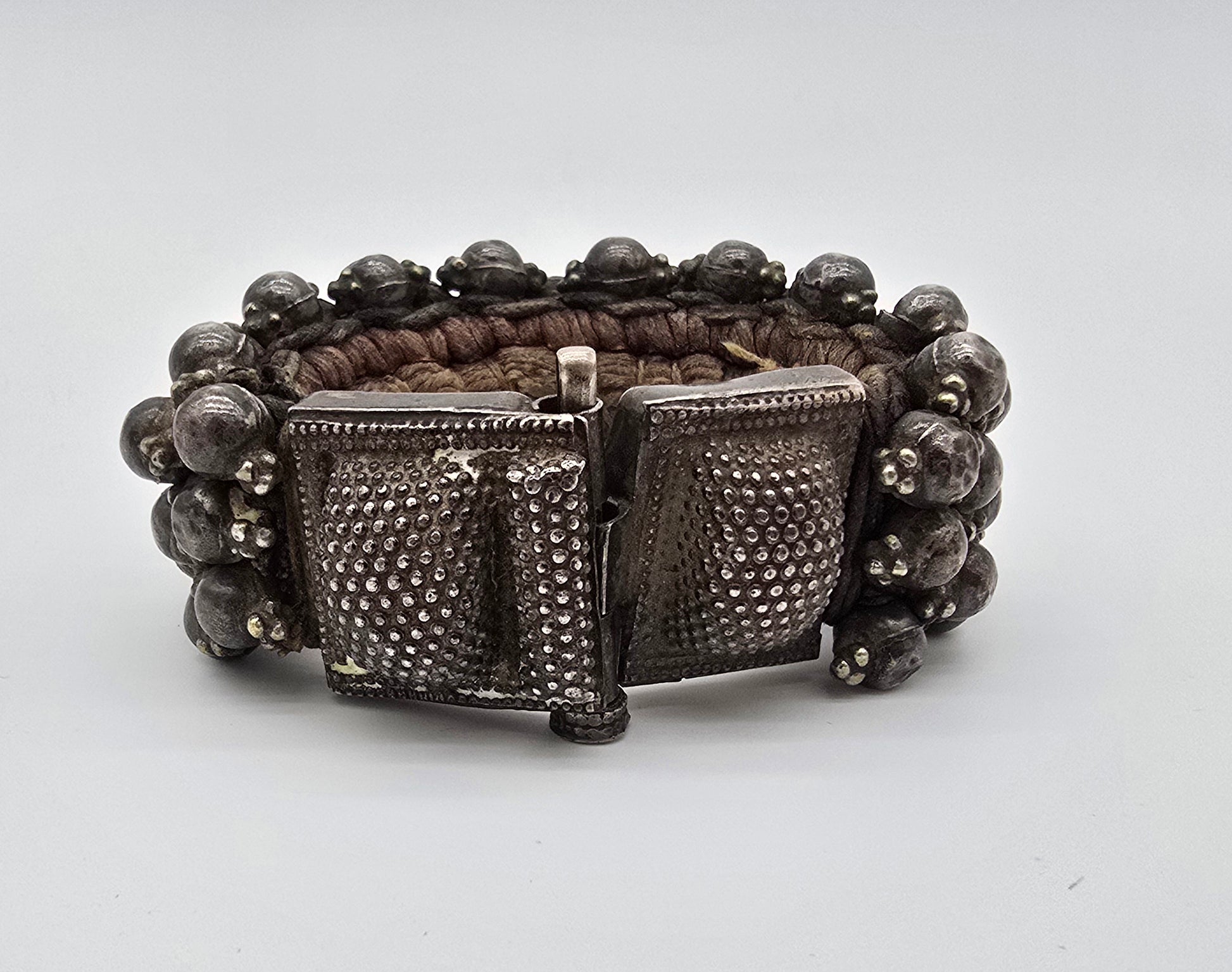 Antique Silver Rajasthan Beaded Ball Cuff Bracelet