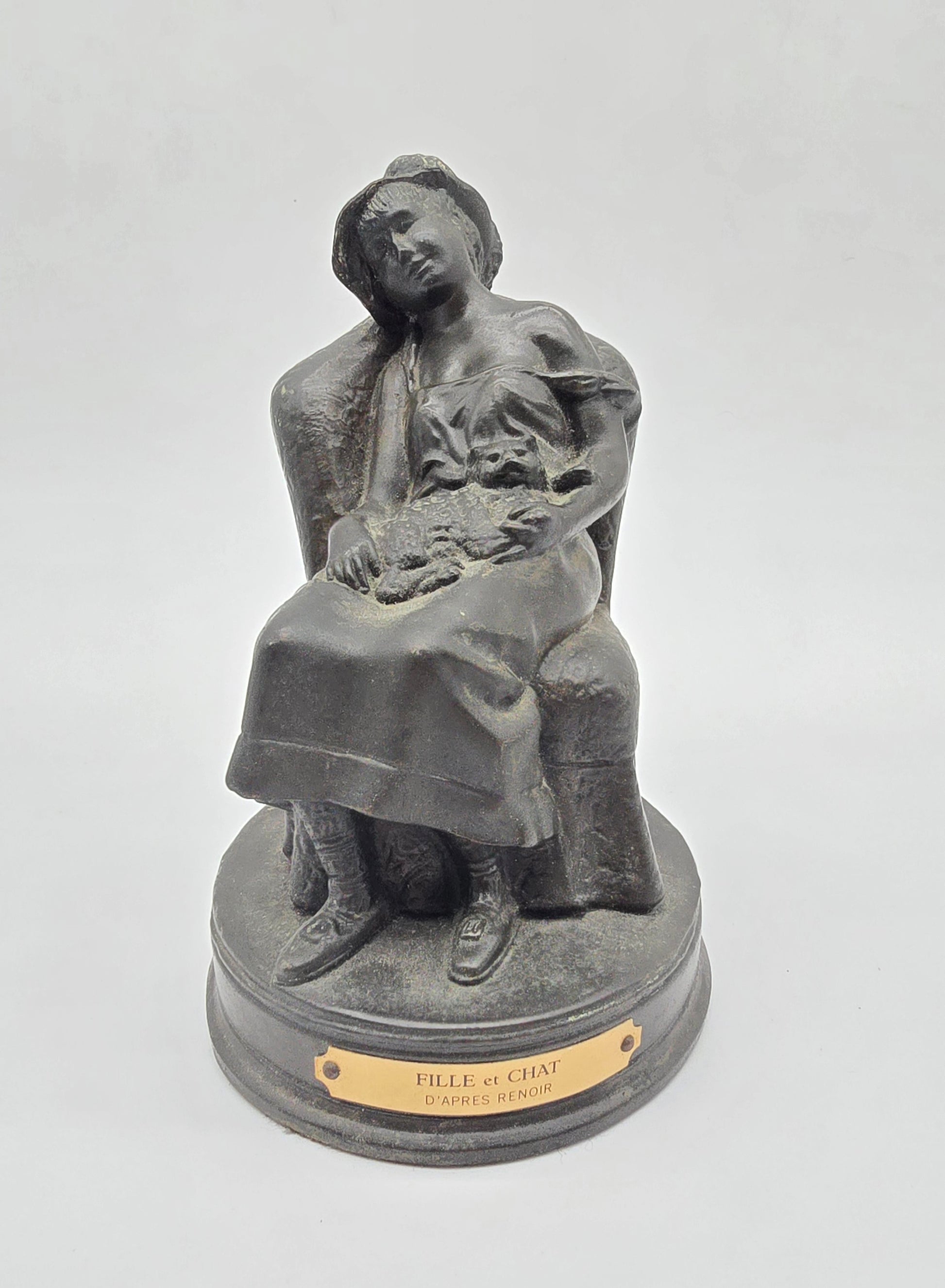 H. Kalish Fille et Chat Girl Woman Lady with Cat Bronze Statue