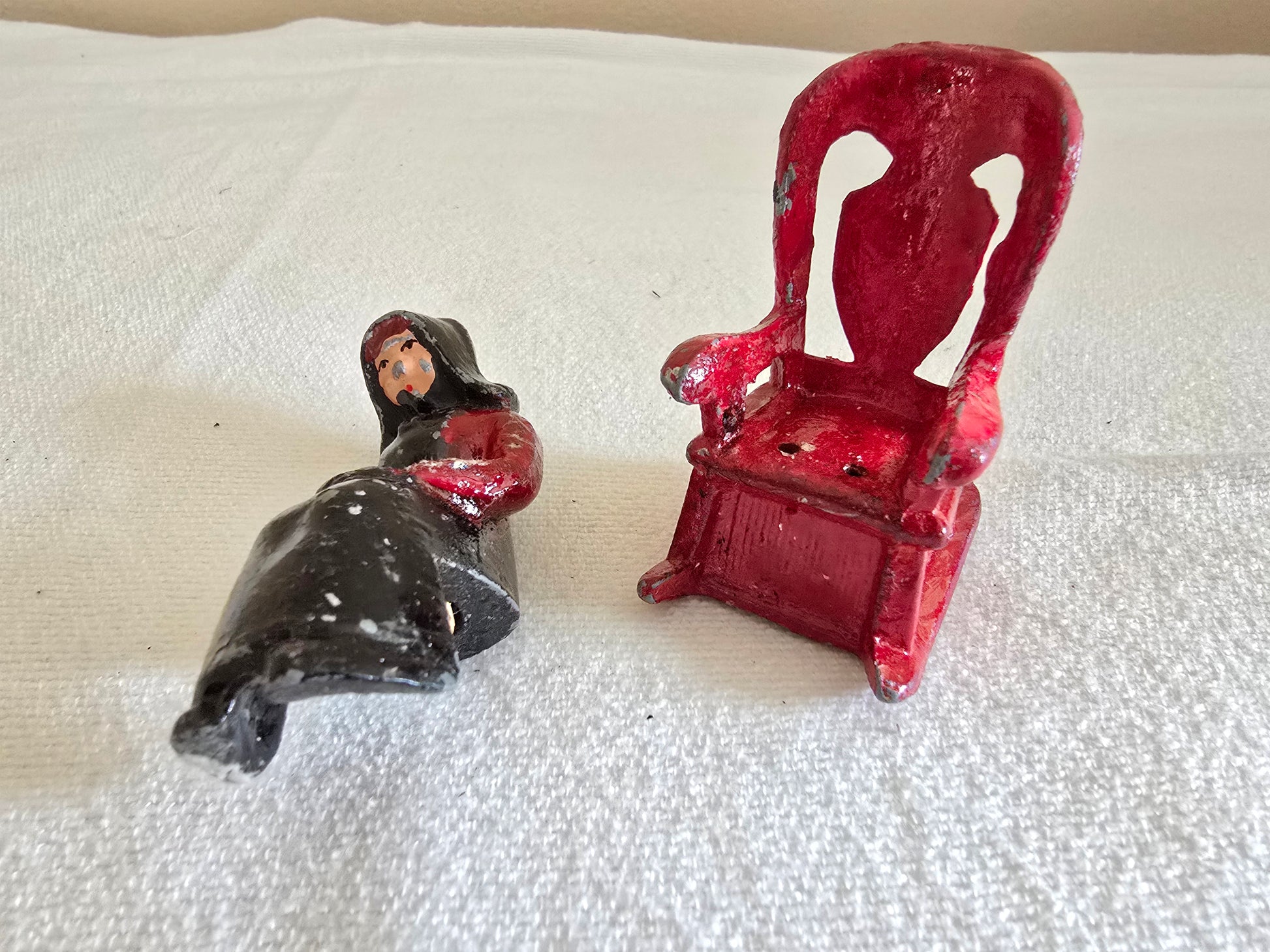 Vintage Cast Iron Amish Woman on Rocking Chair Salt and Pepper Shakers