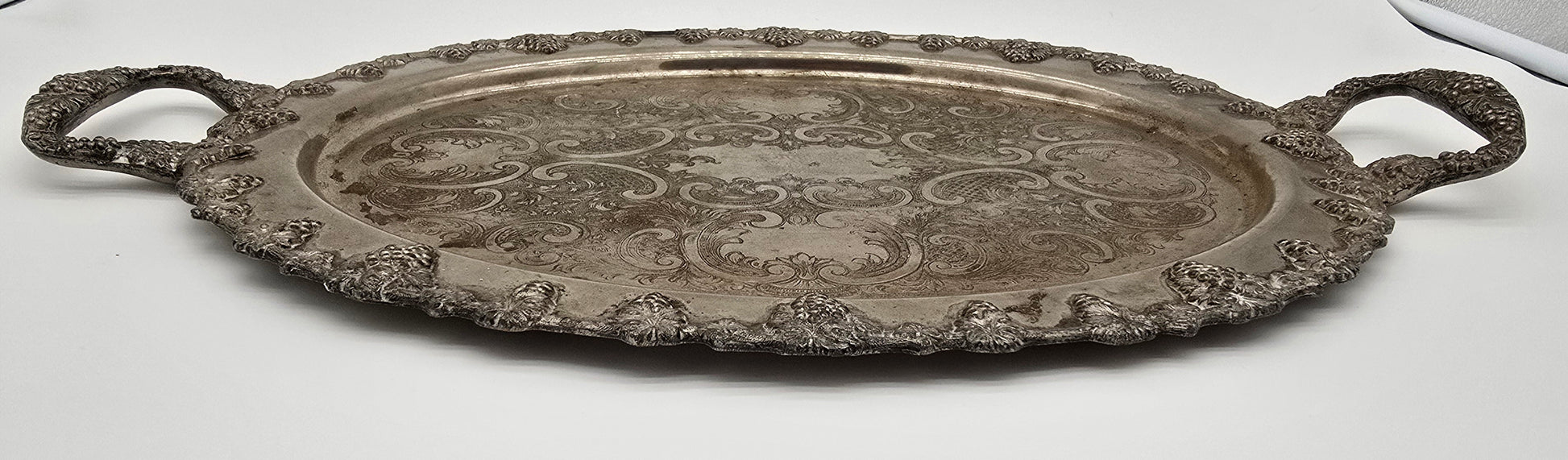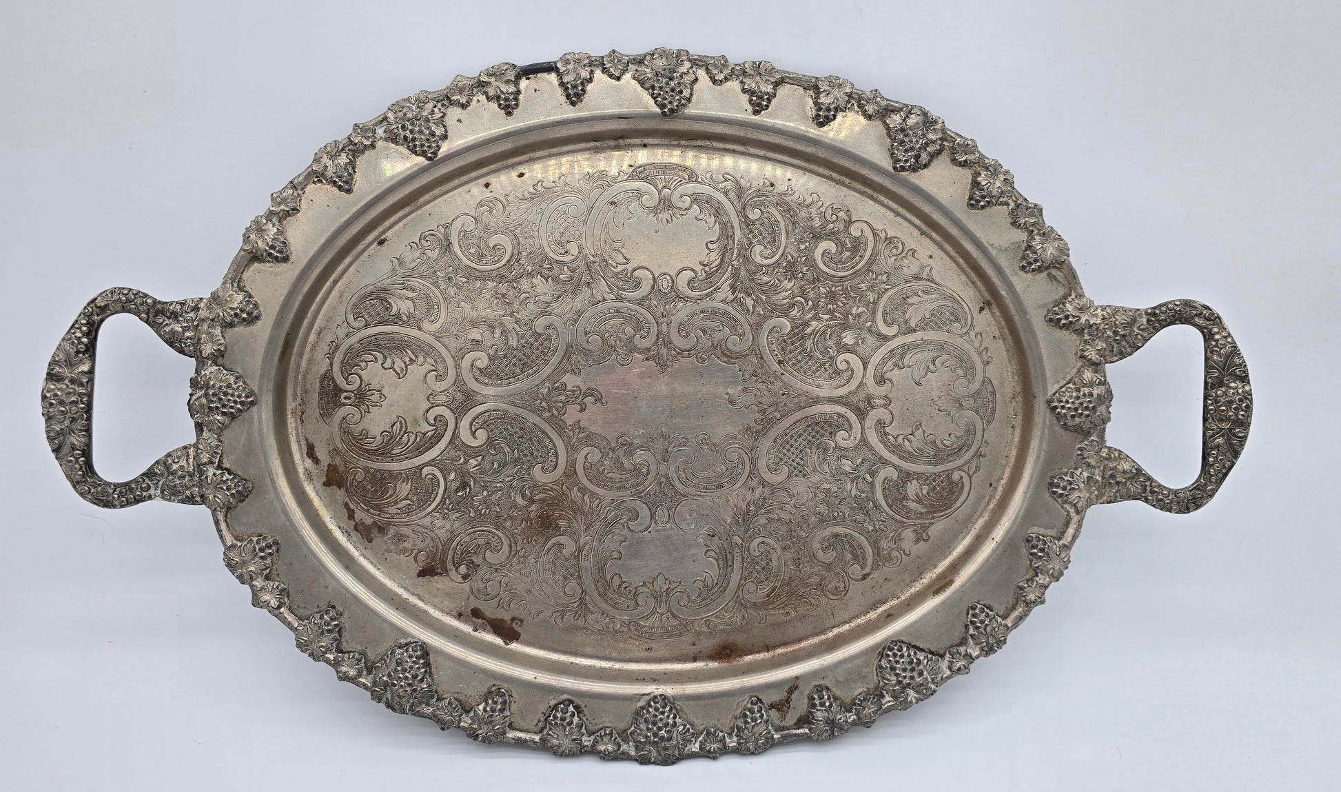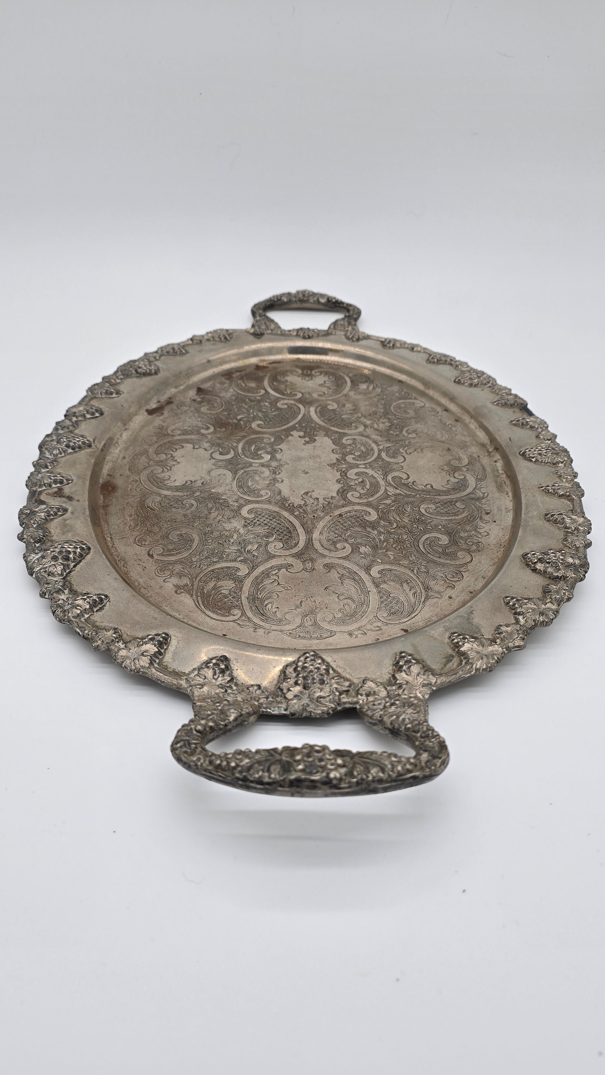 Vintage Federal Silver Co. Silver on Copper Butler Serving Tray with Handles Grape Design