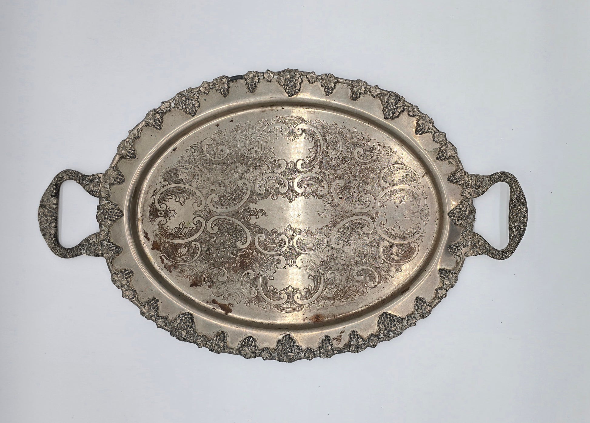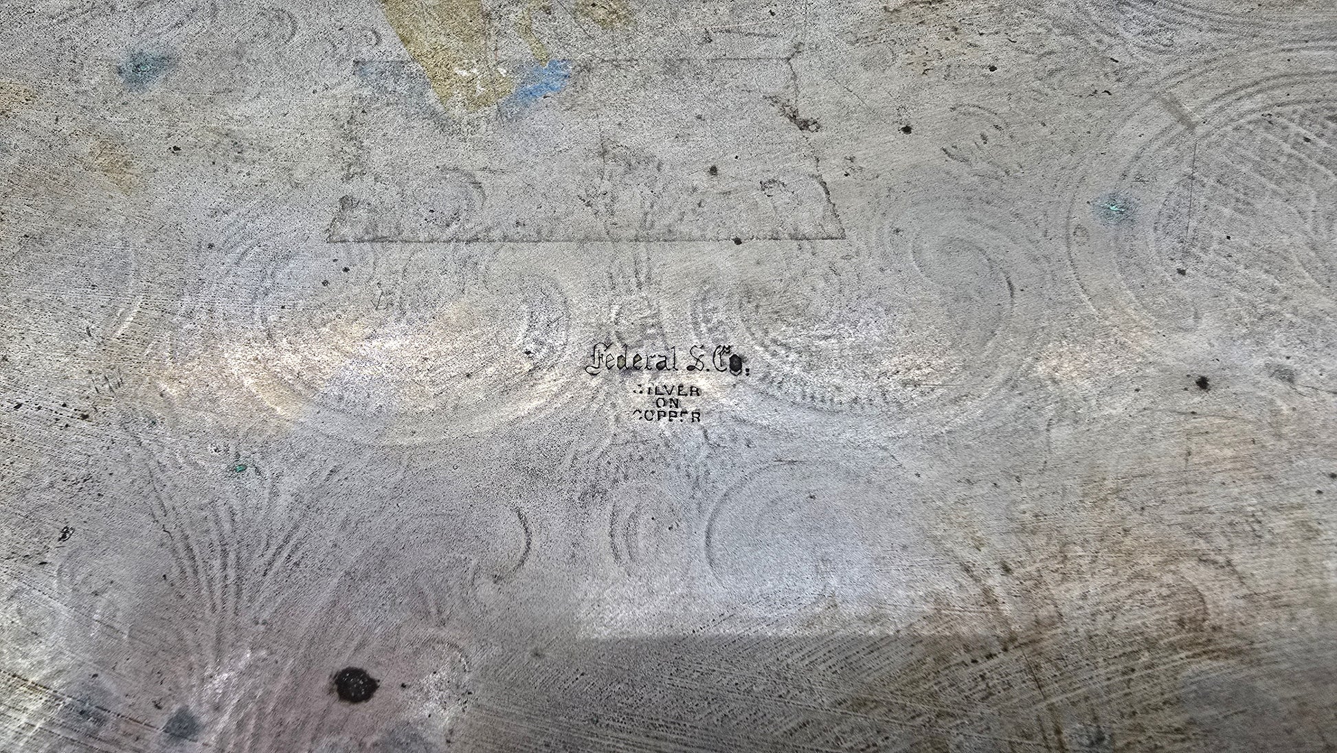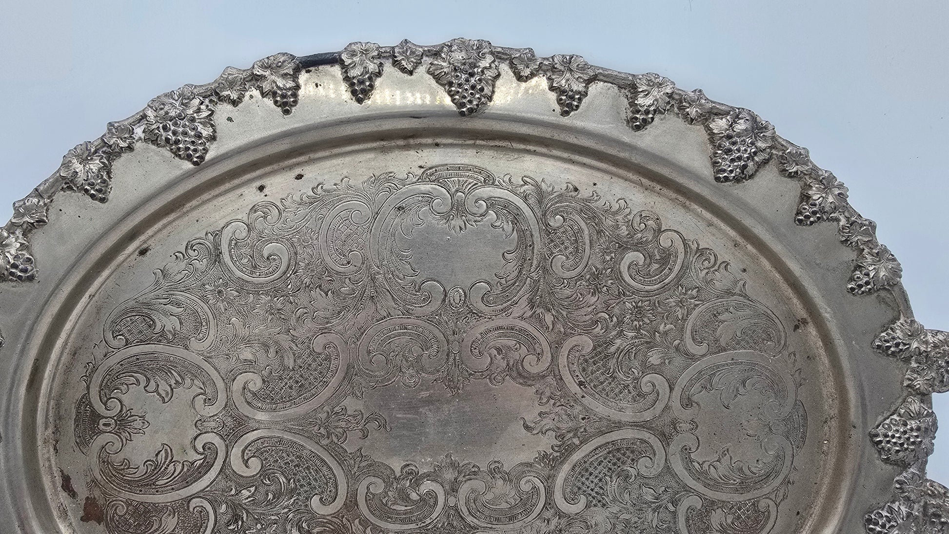 Vintage Federal Silver Co. Silver on Copper Butler Serving Tray with Handles Grape Design