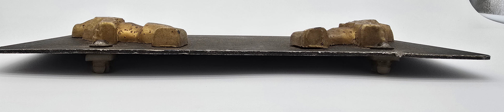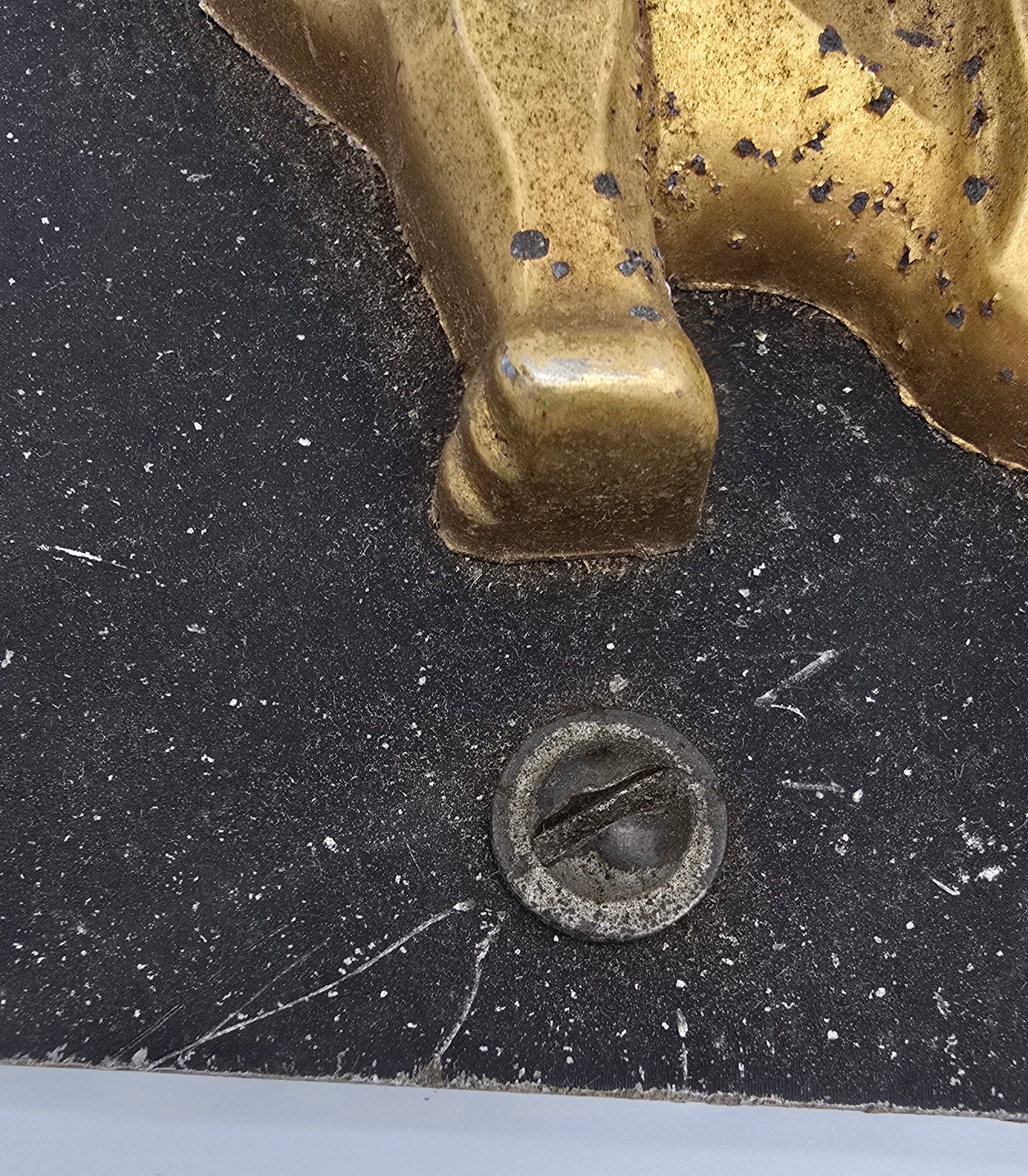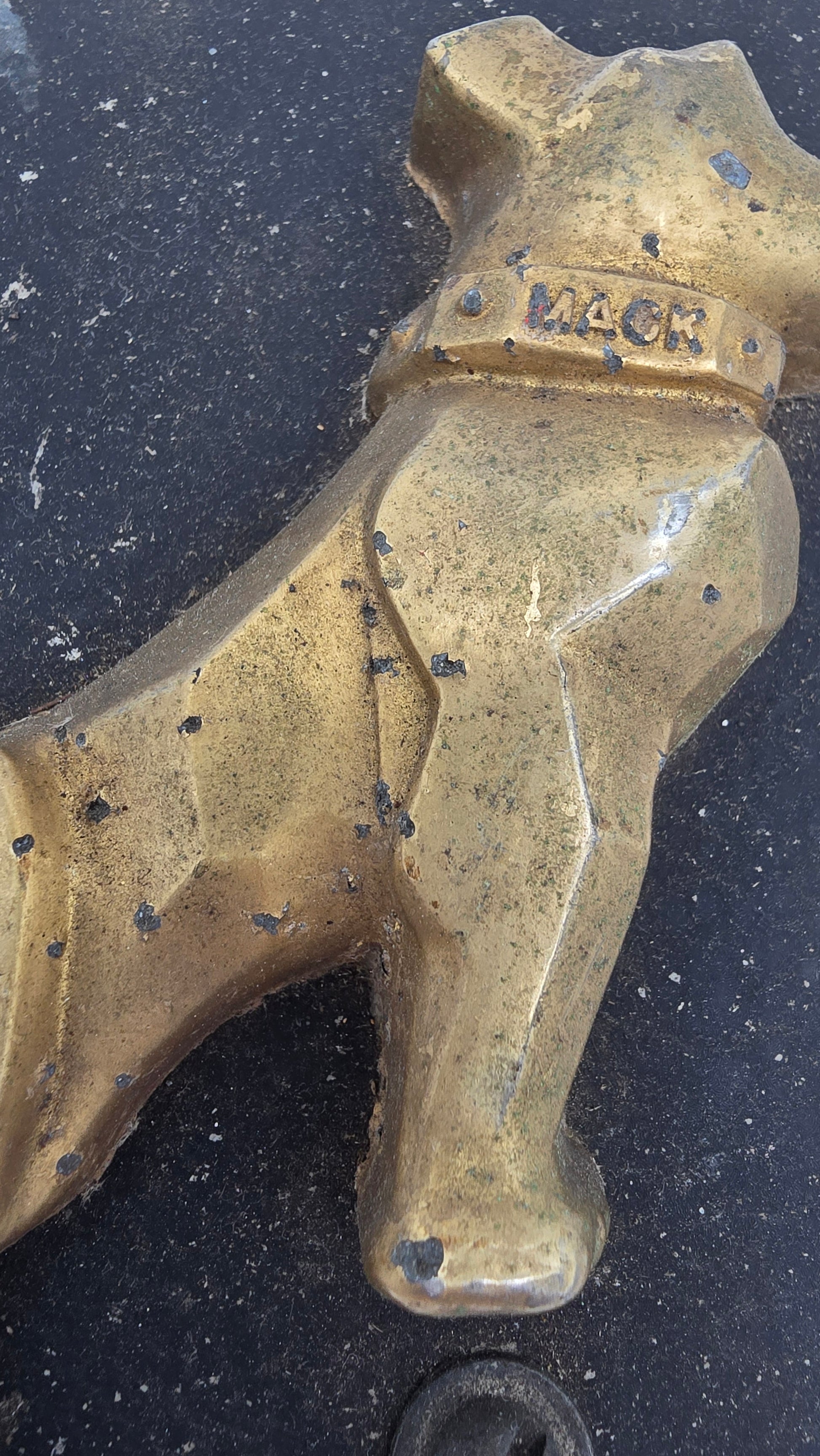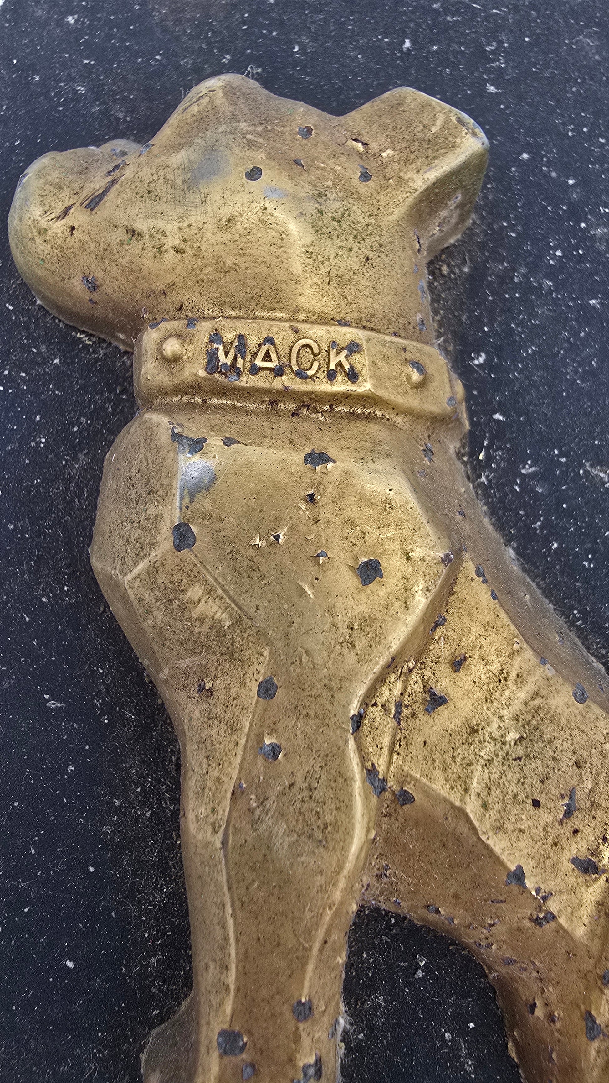 Vintage Gold Mack Truck Bulldog Side Emblems Mounted on Metal Plate