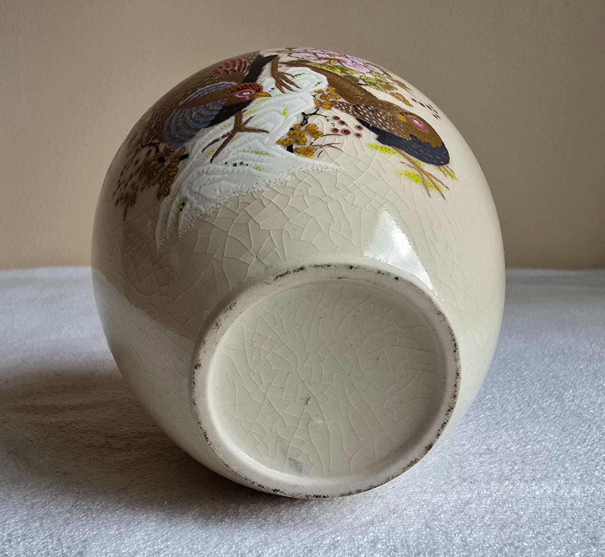 Vintage Hand Painted Porcelain Vase Asian Style Kutani Flower & Pheasant Birds Japanese