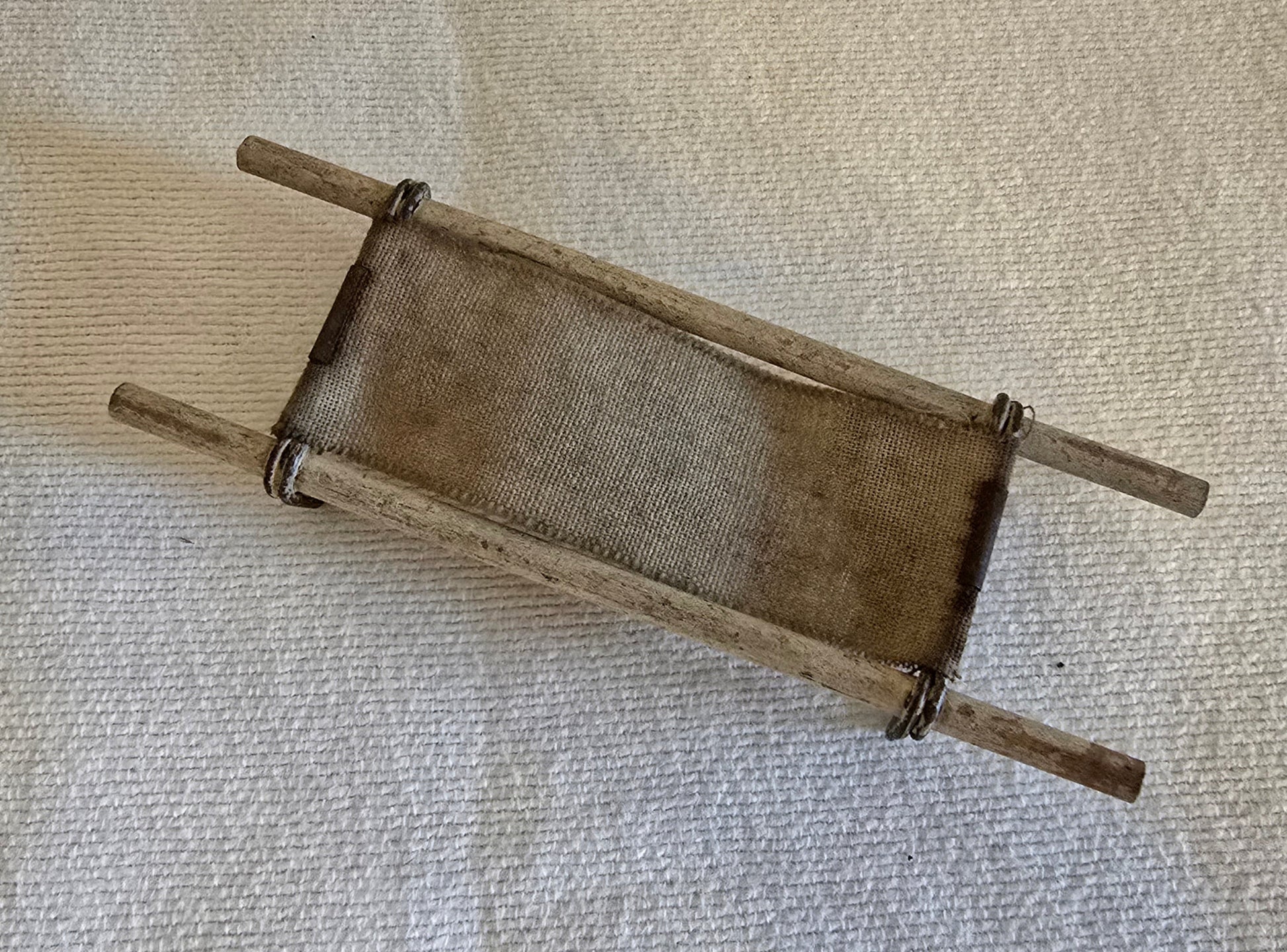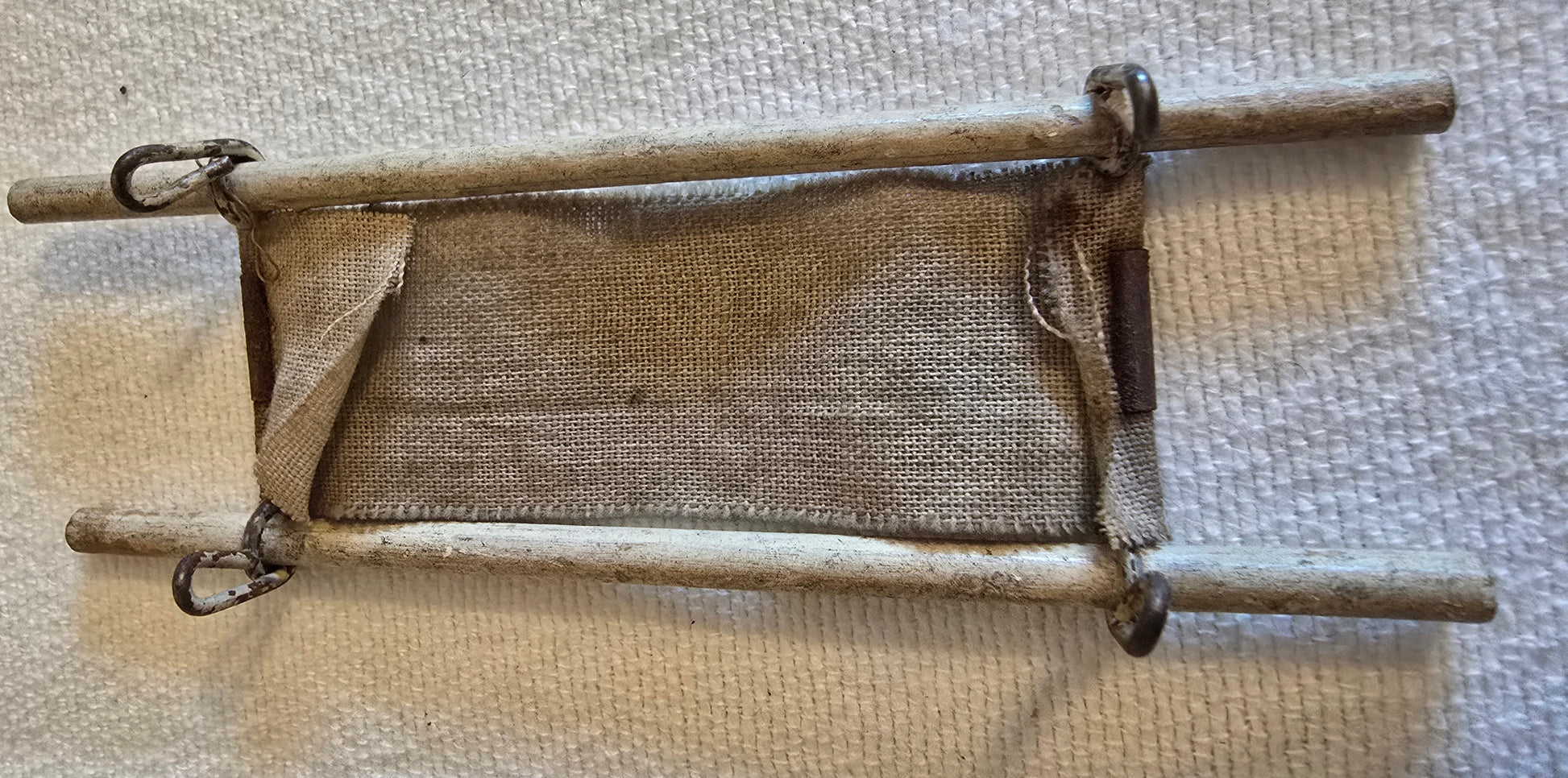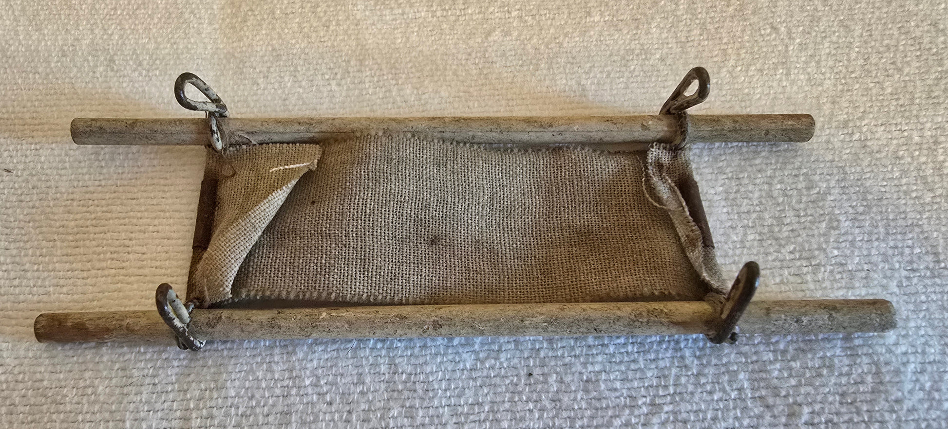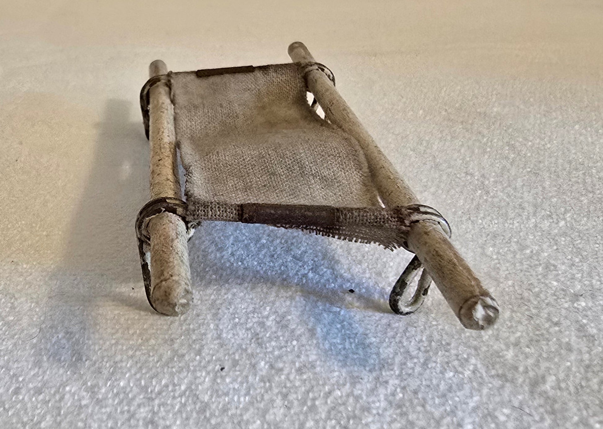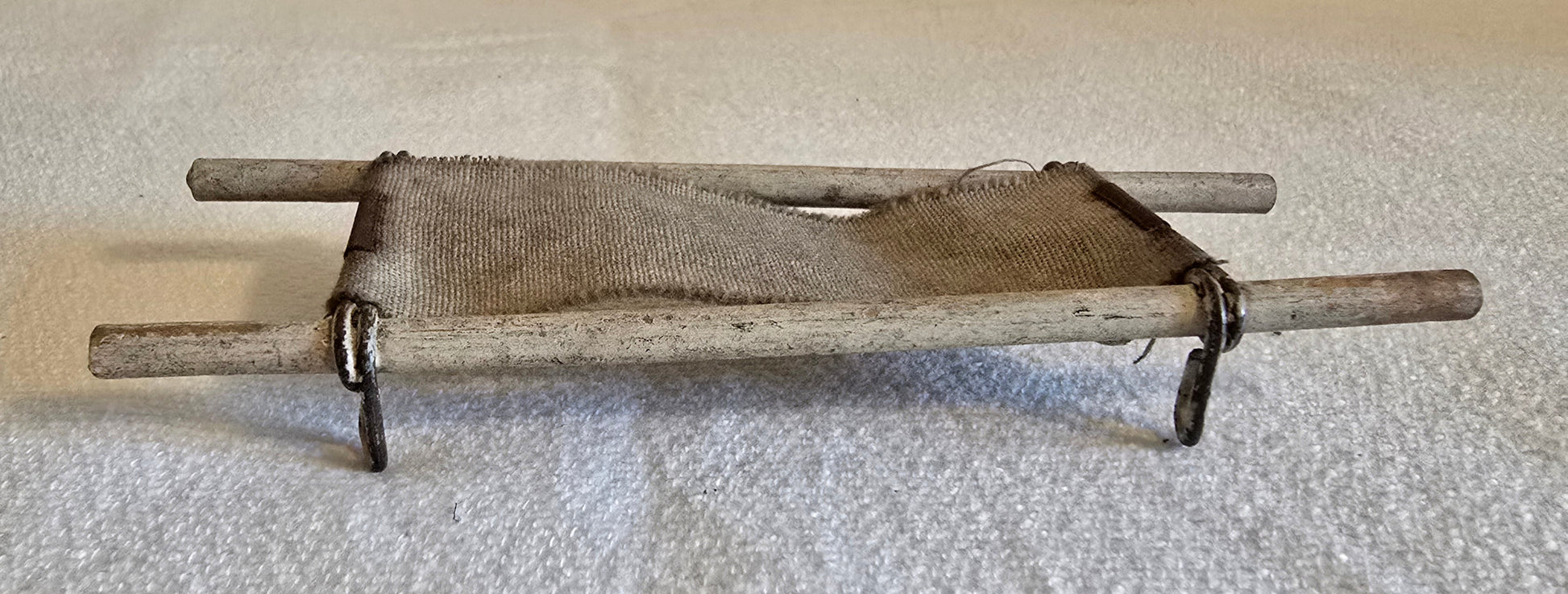 This vintage Manoil Barclay stretcher, designed for lead toy soldiers, measures 5" wide by 1.5" deep and 0.5" high. Crafted with attention to detail, it remains in excellent condition with only minor signs of age and use. A rare accessory for collectors seeking authentic period pieces to complement their vintage lead soldier sets.