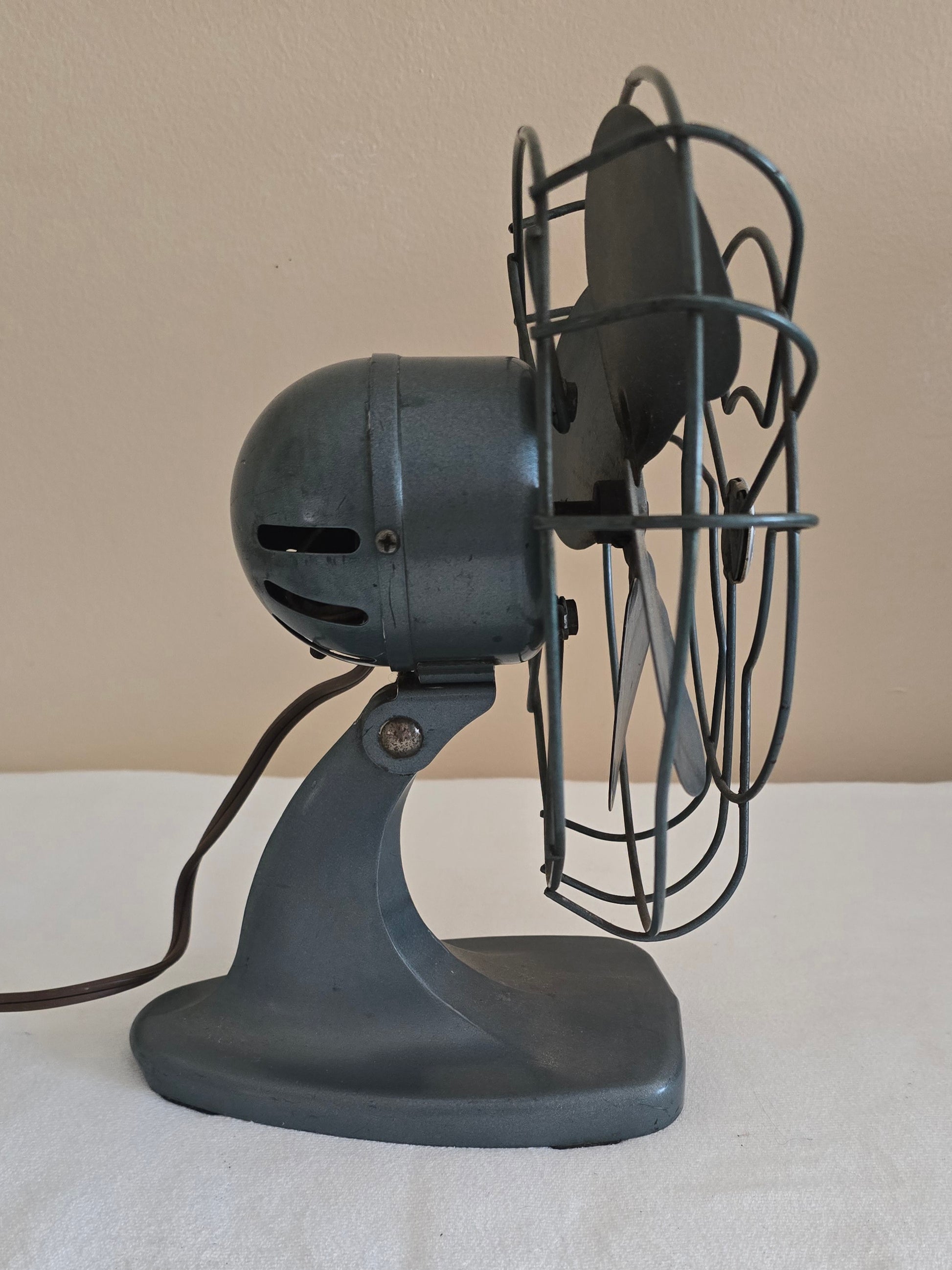 Vintage Mimar Products Model ST-28S Desk Table Fan Blue Gray Metal Adjustable Tilting