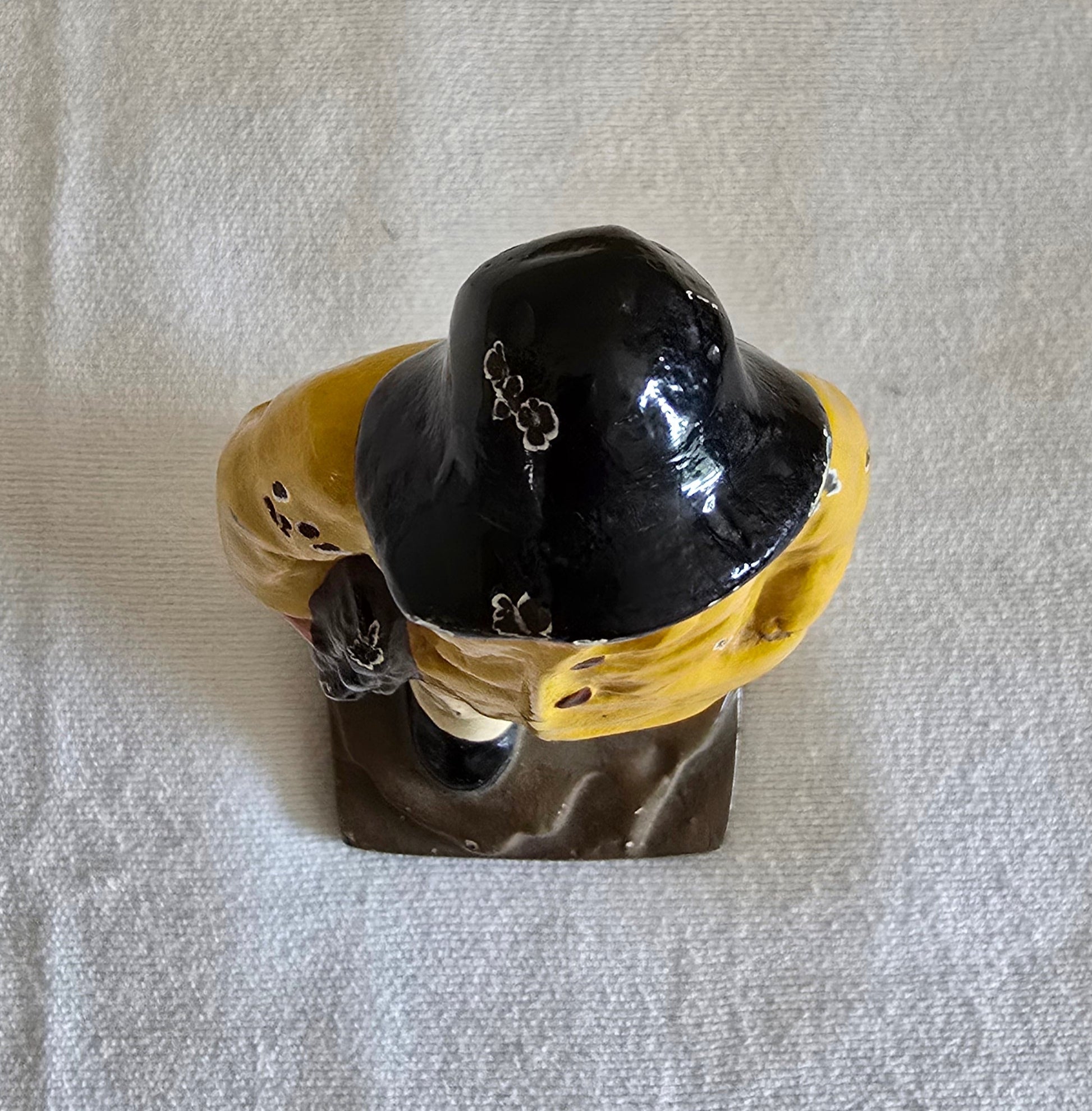 This vintage "Old Salt" fisherman cast iron piece serves as a sturdy bookend or doorstop, combining nautical charm with practical weight. Measuring 2.5" wide, 2.5" deep, and 6.75" high, its heavy construction ensures reliable support for books or doors. Ideal for collectors or those seeking a functional maritime accent, this cast iron item offers durability and timeless character.