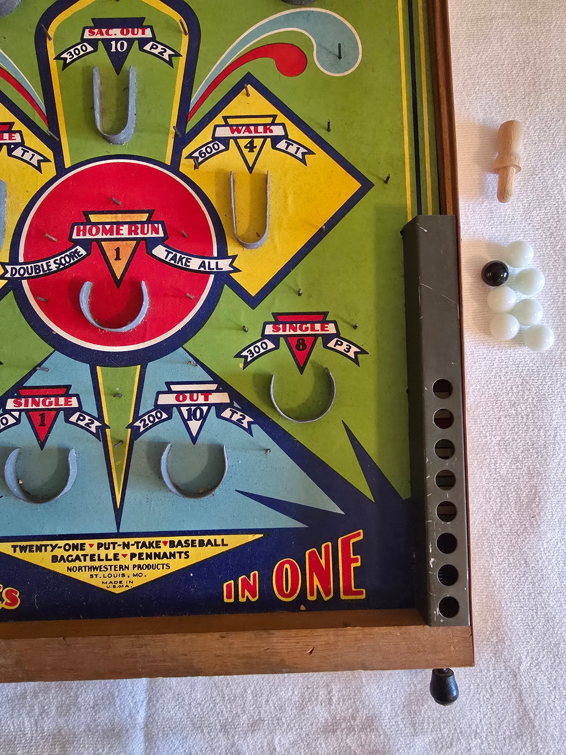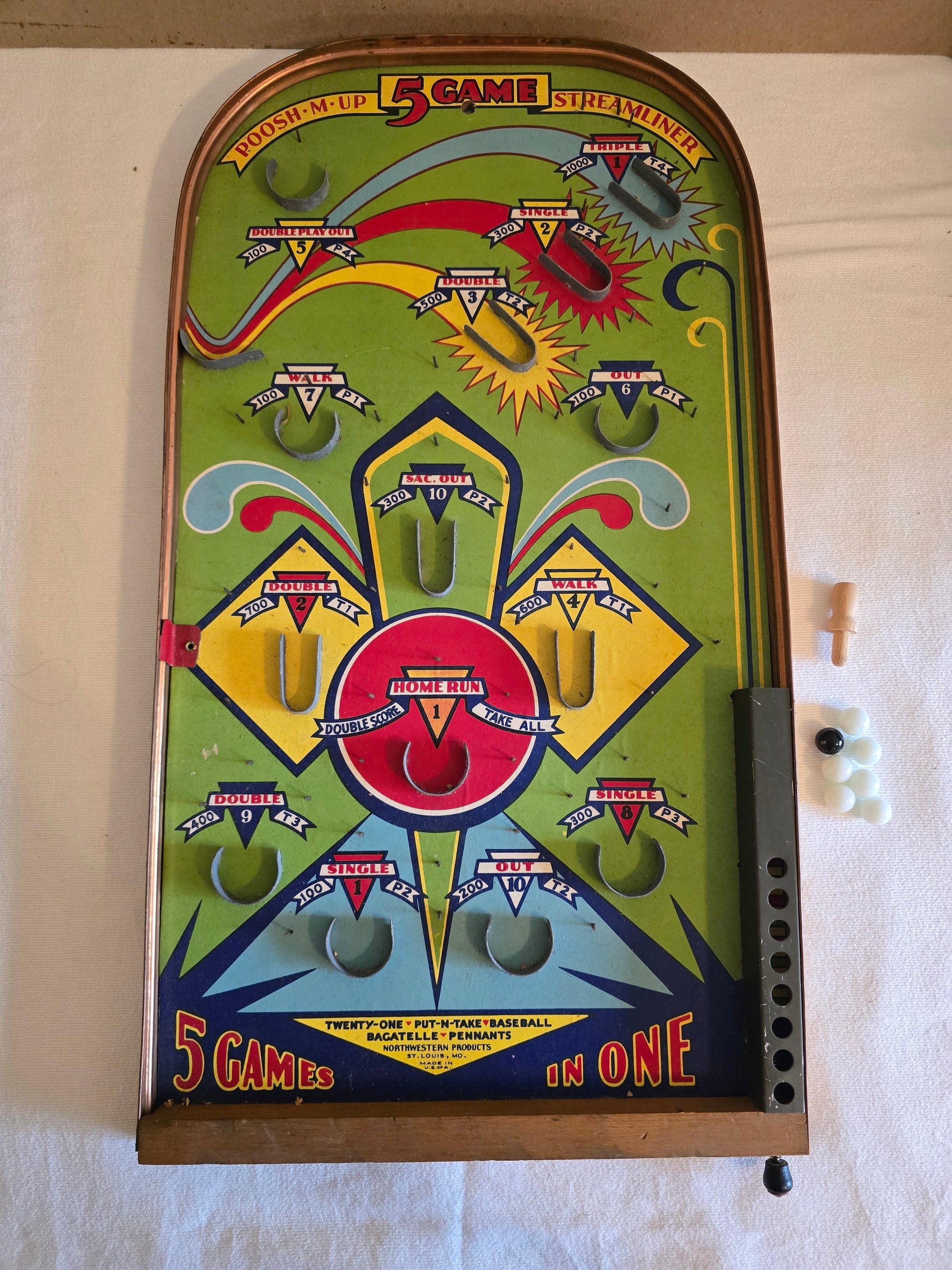 Vintage Poosh-M-Up 5 Game Streamliner No. 5GS Northwestern Products Co. Bagatelle Tabletop Pinball Game