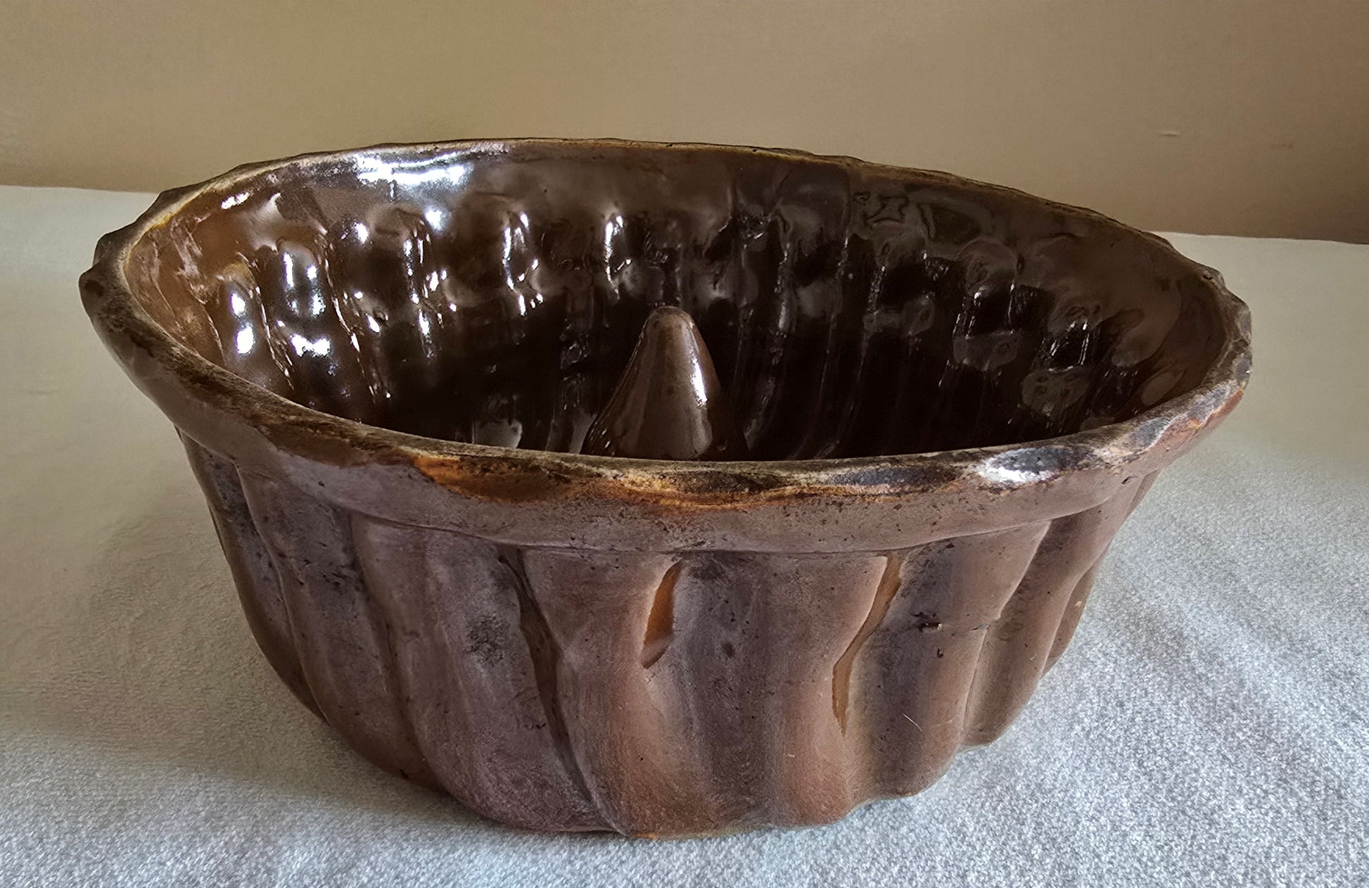 Vintage Redware Turks Head Bundt Pan Cake Mold with Handle 9"