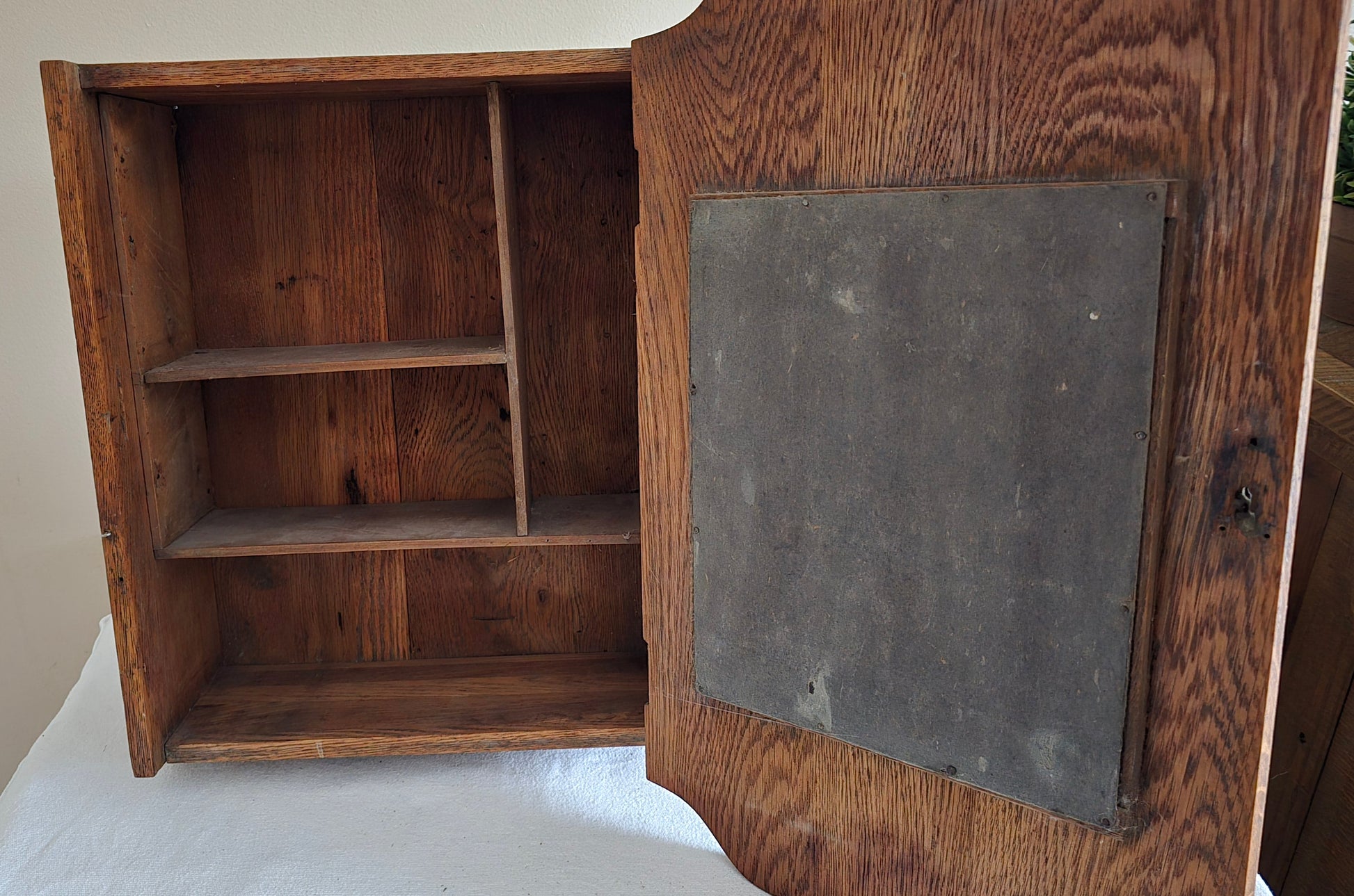 Vintage Solid Oak Medicine Cabinet with Mirror