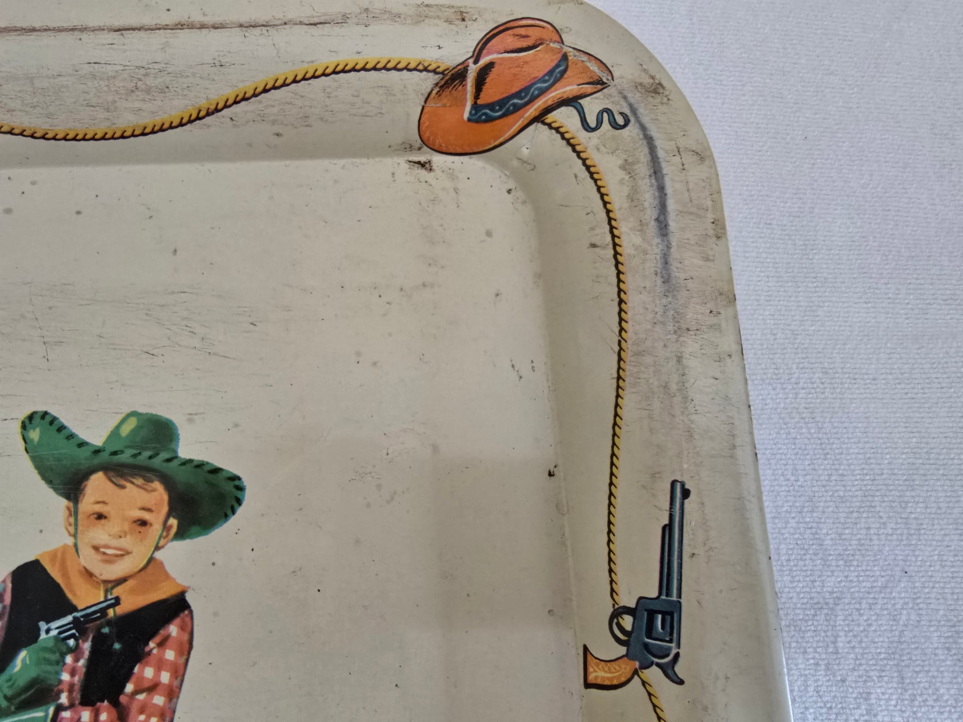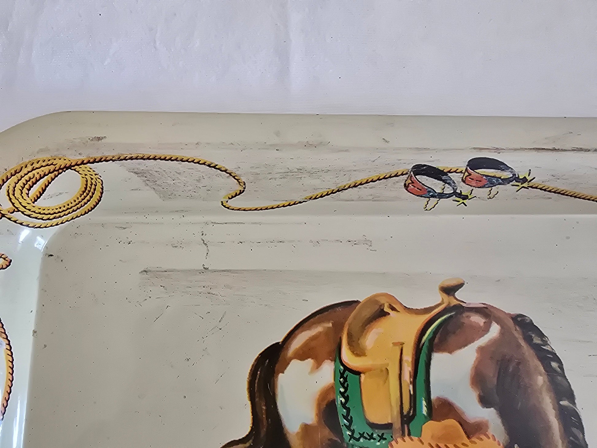 Vintage Western Cowboy Kids and Horse Tin Serving Tray